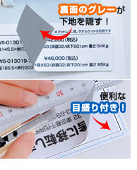 ・ラベルの端に目盛りが付いているので、ジャストサイズにカットできます。 |