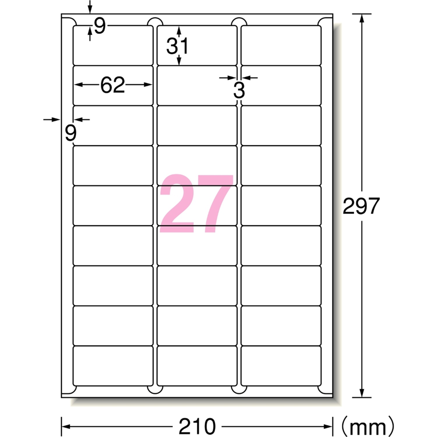 強粘着タイプ マット紙・ホワイト A4判 27面 四辺余白付角丸