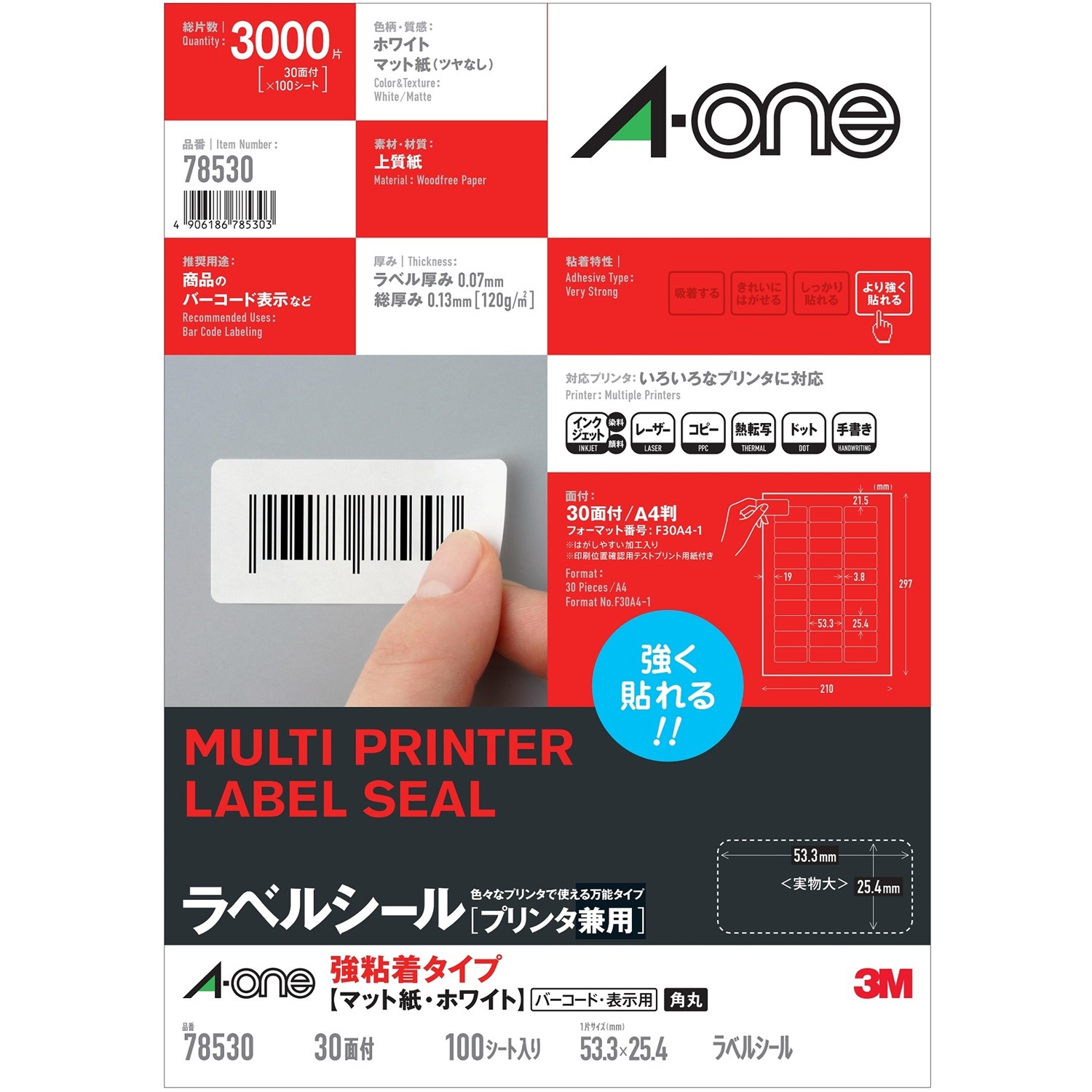 強粘着タイプ マット紙・ホワイト A4判 30面 四辺余白付角丸