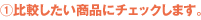 MYリストで表示されている商品にチェックをつけて、「選択した商品で仕様を比較する」をクリックすると、チェックした商品(最大3商品)の仕様を比較することができます。